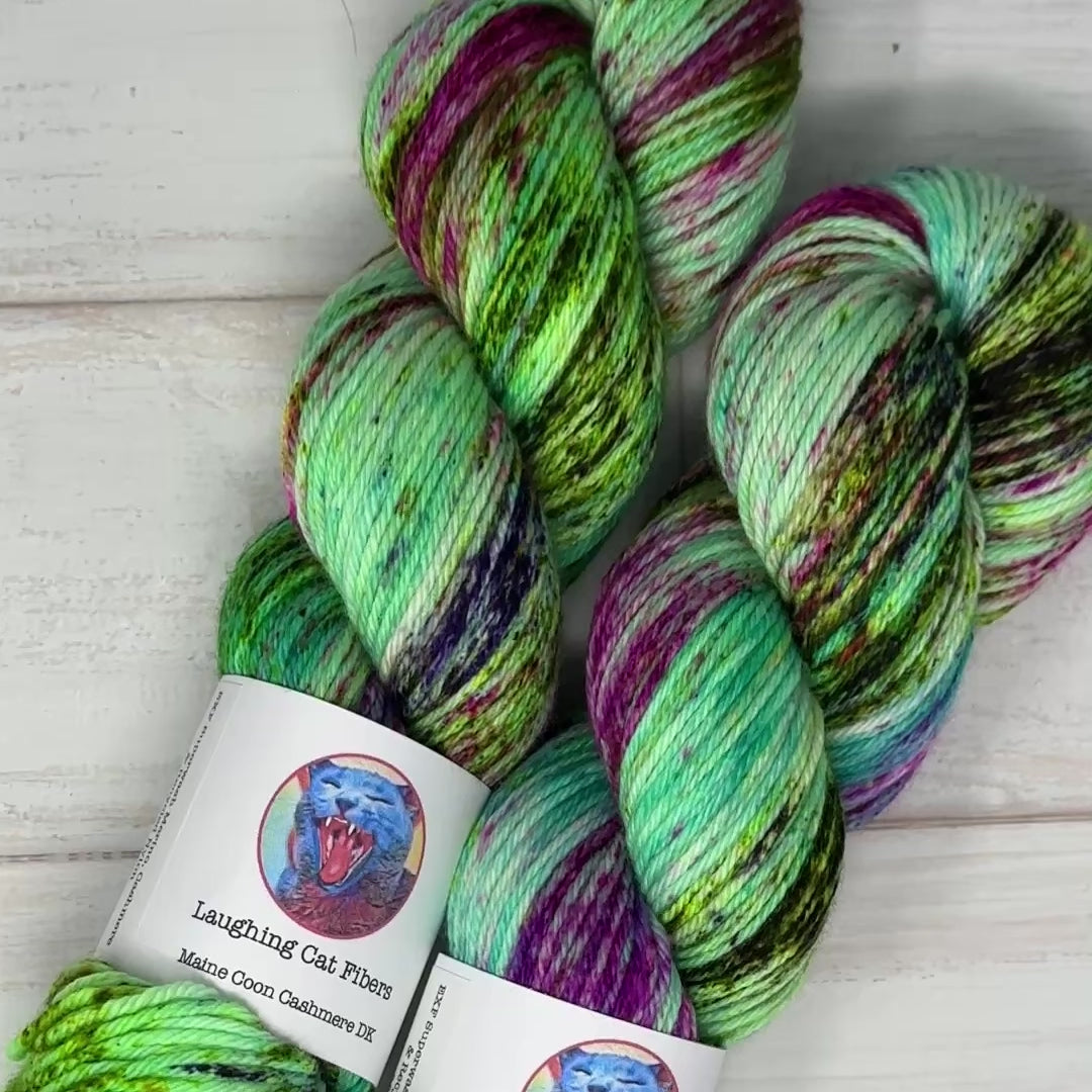 This colorway is available on various Laughing Cat Fibers yarn bases.