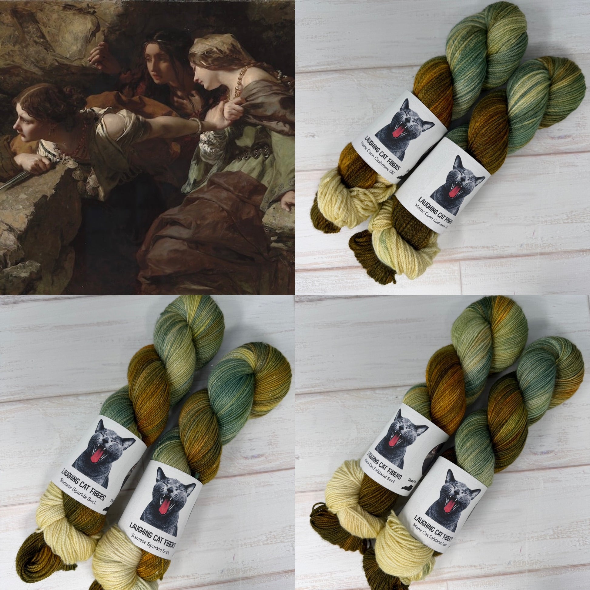 Patterns shown are for inspiration only and are not included with this purchase.Sample pieces may be knit by Laughing Cat Fibers or by independent sample makers using Laughing Cat Fibers yarn.